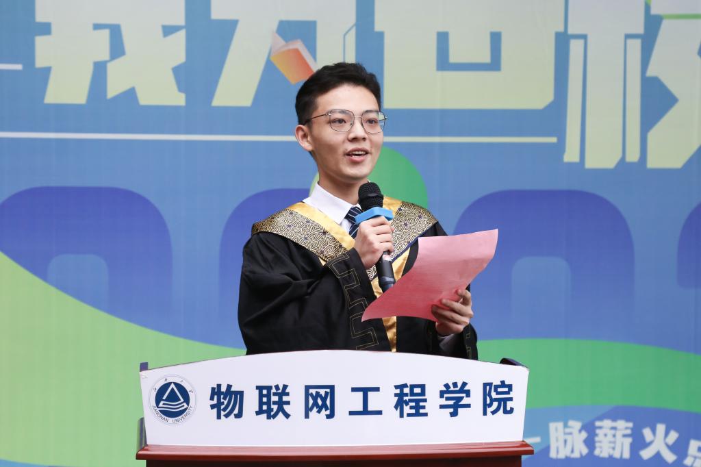 耿向阳致开幕词。他介绍了本次活动的开展背景,正值毕业季来临,学院党委积极拓展毕业生“最后一课”教育空间,引导毕业生们通过爱心捐赠将知识与智慧传递,把阅读时光定格,让江南永存薪火相传之精神。他在讲话中指出,一流的人才不仅要具备一流的专业知识储备,同样要有一流的文化知识素养,倡导全体毕业生要以书为友,融书为己用,争取在高速发展的科技浪潮中站稳脚跟、在各种思潮交融交锋中把握主流、在纷繁复杂的现象中抓住本质,在二者的同频共振下打造出一流的核心素养,成长为真正的高素质人才。最后,他用“爱读书,读好书,善读书”来鼓励同学们汲取智慧、储备知识、增长才干、勇毅前行。