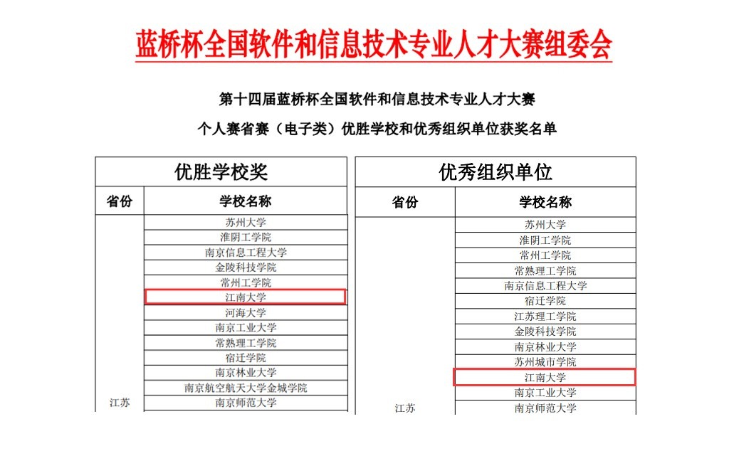 近日,第十四届“蓝桥杯”全国软件和信息技术专业人才大赛江苏省赛电子类赛道落下帷幕。江南学子共获电子类奖项69项,其中一等奖16项、二等奖27项、三等奖26项,16人取得国赛参赛资格,91探花