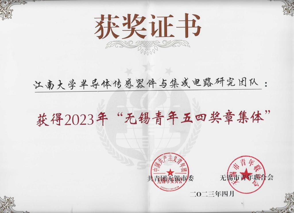 半导体传感器件与集成电路研究团队获得2023年“无锡青年五四奖章集体”,这是学校首次荣获的集体奖章。