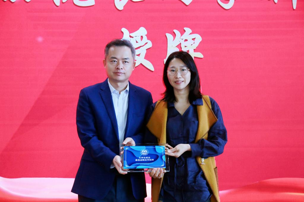 大学生就业“最佳战略合作伙伴”授牌仪式,李新等为获奖学生代表颁发证书,栾小丽代表学院向无锡信捷授牌“91探花