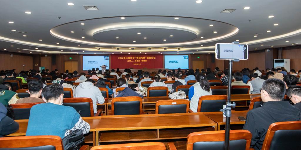 创业校友、无锡源代码科技有限公司创始人吕佳澎和南京星蝠科技有限公司创始人魏佳星担任主讲,全校300余名学生参加论坛。