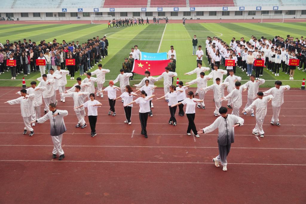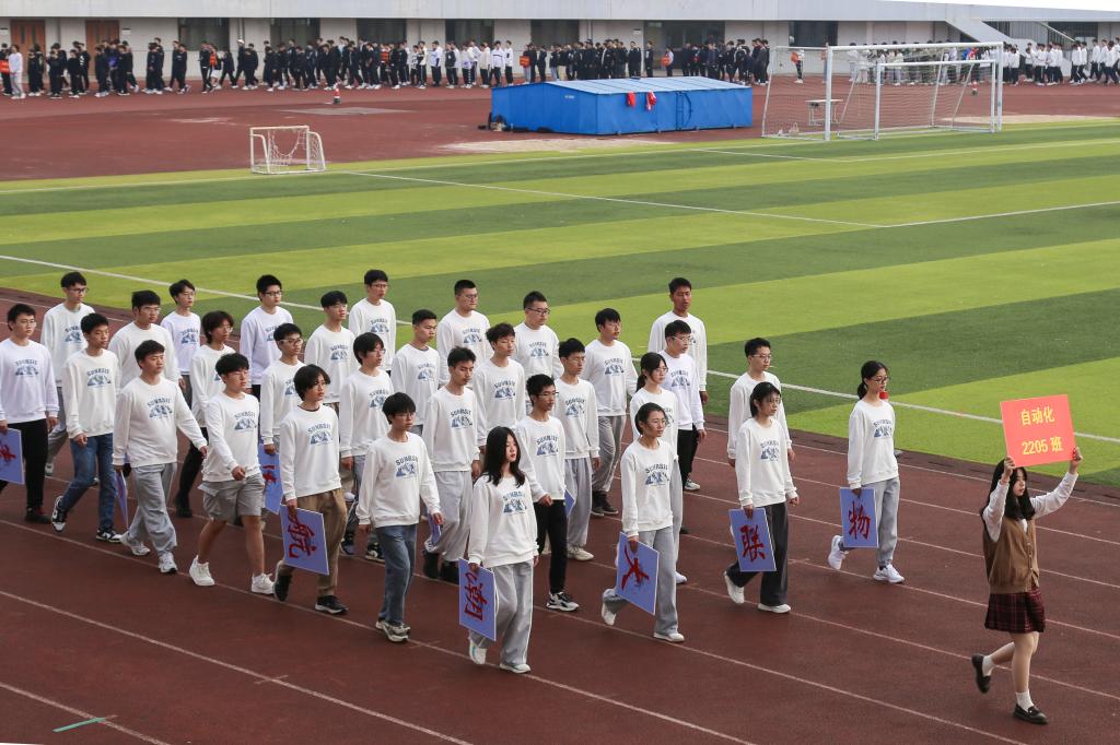 开幕式伊始,伴随着雄壮的《运动员进行曲》,国旗方阵、院旗方阵、班级方阵迈着矫健的步伐有序入场。方阵喊着响亮的口号进入大家的视野,独具特色的队列、铿锵有力的步伐、整齐划一的动作都充分展示出物联学子朝气蓬勃的青春力量和逐梦前行的校园风采。紧接着,学生代表带来精彩的戏曲广播操表演和歌曲表演,以青春的名义表达对党和国家的热爱与赞美,唱响物联学子的责任与担当。