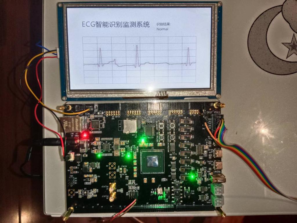 虞致国老师指导的作品《基于深度学习和协处理器加速的心律识别系统》由佴宇飞、何丁赋、方正汉三名同学共同研发完成,团队成员经过初赛、华东分赛区决赛、全国总决赛的激烈角逐,从众多队伍中脱颖而出获得全国二等奖。该项目基于国家级大创项目,以心血管疾病对公共卫生健康的影响为背景,通过利用深度学习技术,实时监测并诊断心电信号,实现“远程医疗”“实时医疗”与“智能医疗”。该作品基于高度优化的蜂鸟E203 Core,实现三隐藏层全连接神经网络,并通过定制AI加速协处理器单元、设计心电信号数据传输通路等方法,进一步挖掘了性能,在限定的可编程逻辑平台上构建了专用于心电信号识别与诊断的SoC。相比市场现有产品,该作品解决了成本高昂、人员依赖、实时监测等问题,可应用于穿戴设备、医疗卫生等多个场合,全方位守护心律健康,为人民健康提供可靠保障。作品相关技术团队已申请国家发明专利两项,进一步筑牢了技术壁垒。