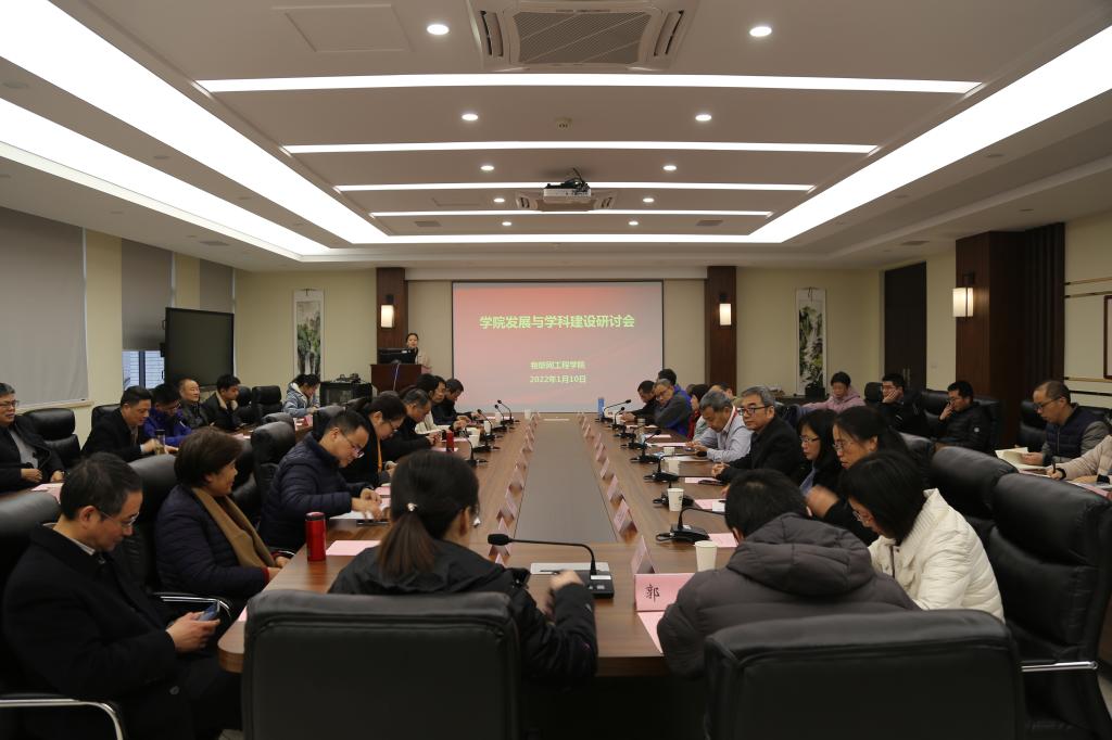 在B222会议室召开学院发展与学科建设研讨会。学院领导班子全体成员以及全体教授、系主任、支部书记、科级干部等近50人参加了会议,会议由学院党委书记程捷音主持。