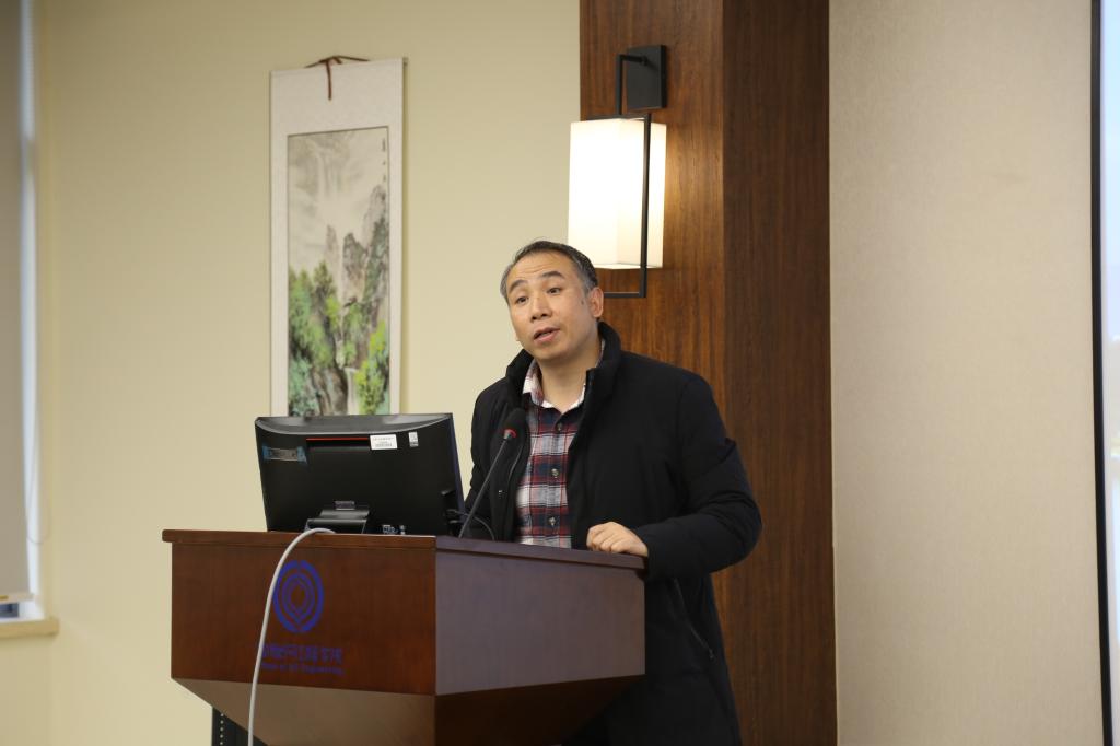 发展规划与学科建设处处长刘飞教授主旨发言,他指出要厘清学院发展和学科发展的关系、学科发展与个人发展的关系,学院教授要把握“变”与“不变”,承担起学科传承的责任。