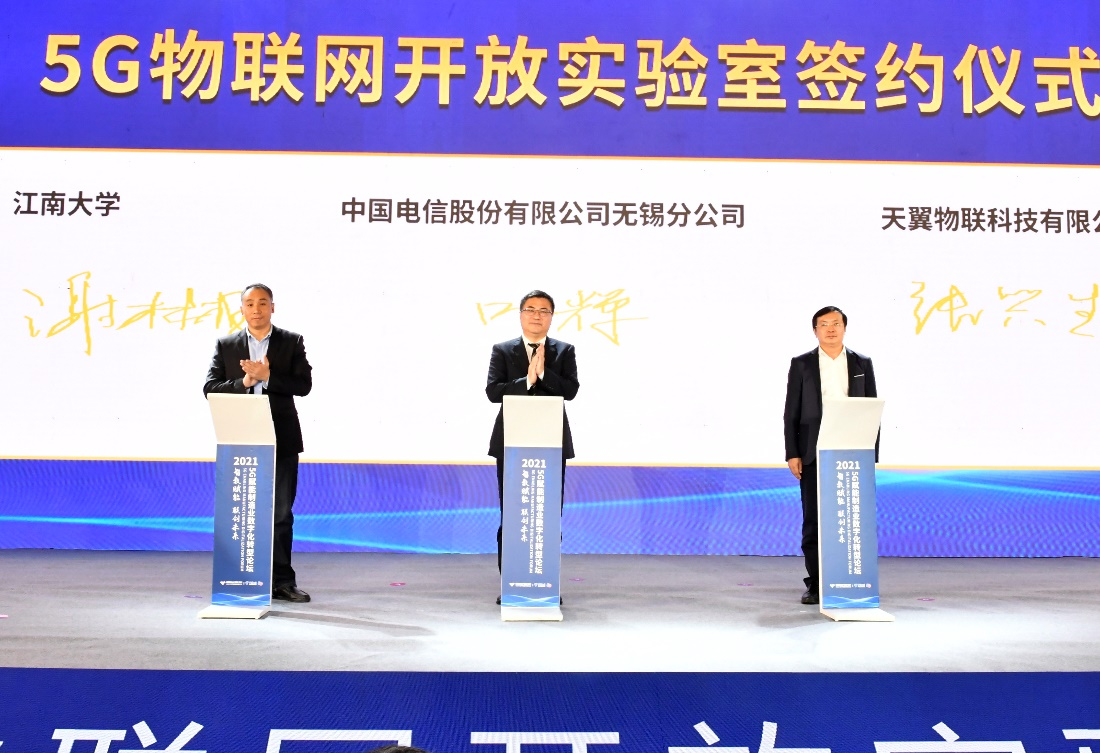 ,在论坛上与天翼物联、无锡电信签署共建5G物联网开放实验室协议。在论坛专题演讲环节,栾小丽教授以“5G+流程工业创新应用研究”为题分享了其研究和实践成果在化工行业、冶金行业等领域的应用。随后,在“共塑数字工业新型契机”圆桌论坛上,6位特邀企业和高校专家在主持人樊启高副教授的引导下围绕主题展开热烈探讨,郭亚教授结合高校的教学与科研特点,就“高校在5G赋能制造业方面所面临的机遇与挑战”在论坛上分享了自己的观点。