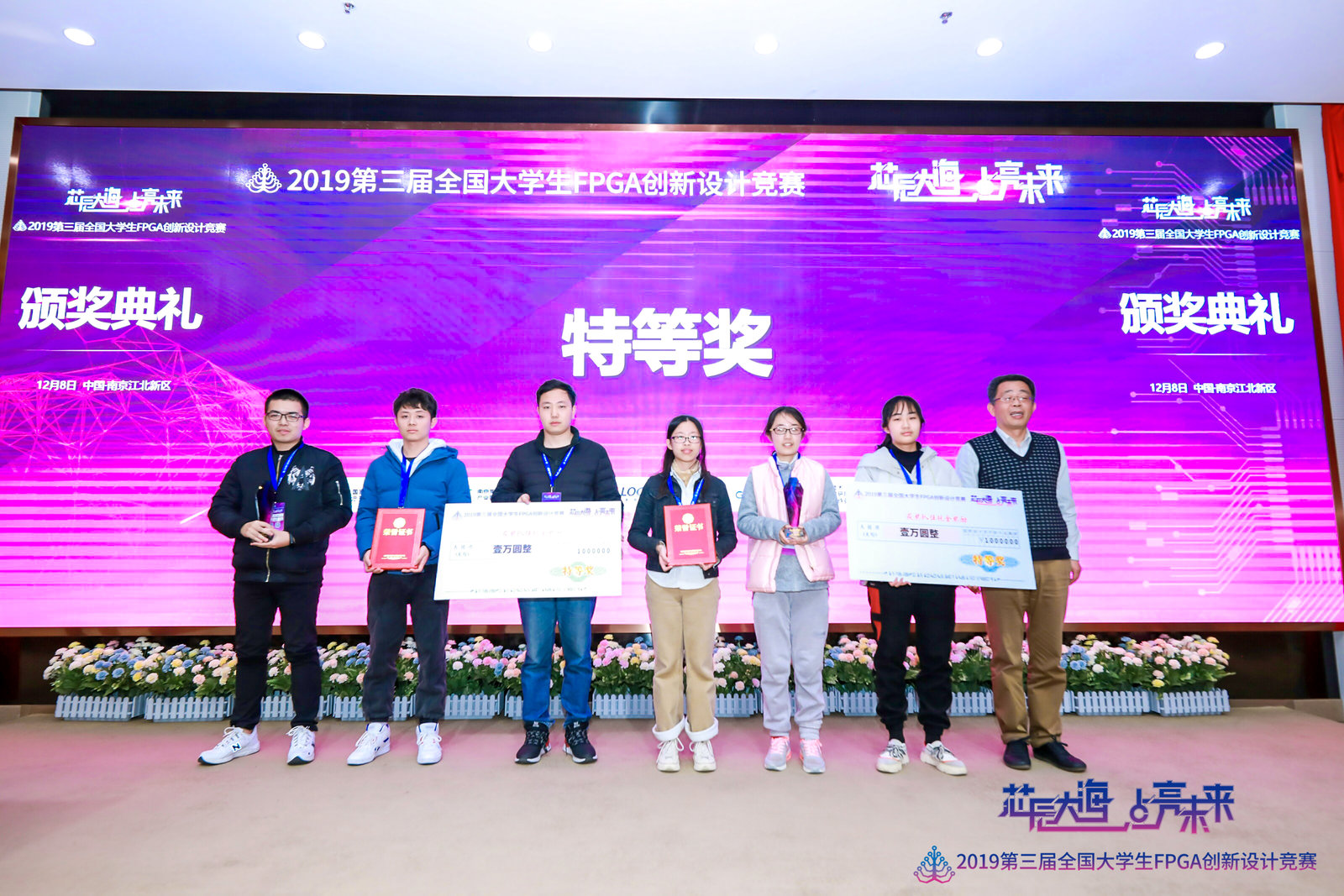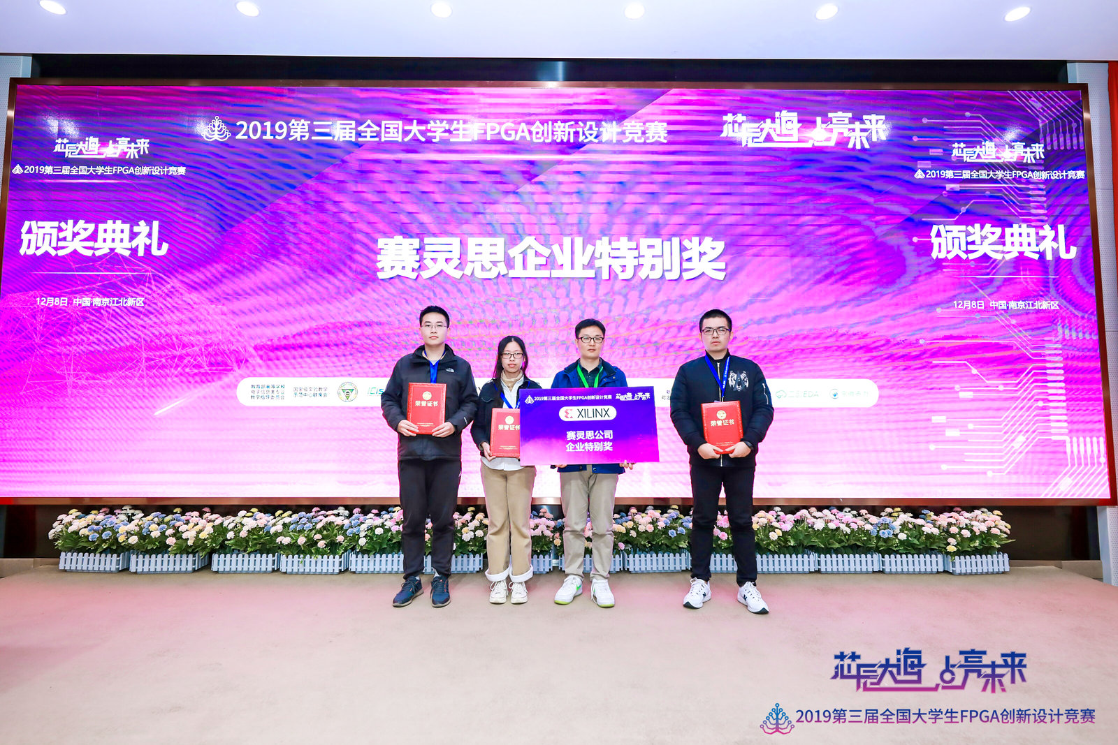 研究生张新伟、李康、郁龚健、刘家航组成。经过激烈竞争,参赛作品“基于FPGA的类脑计算平台”斩获特等奖,并获得全球最大的FPGA提供商Xilinx的企业特别奖。