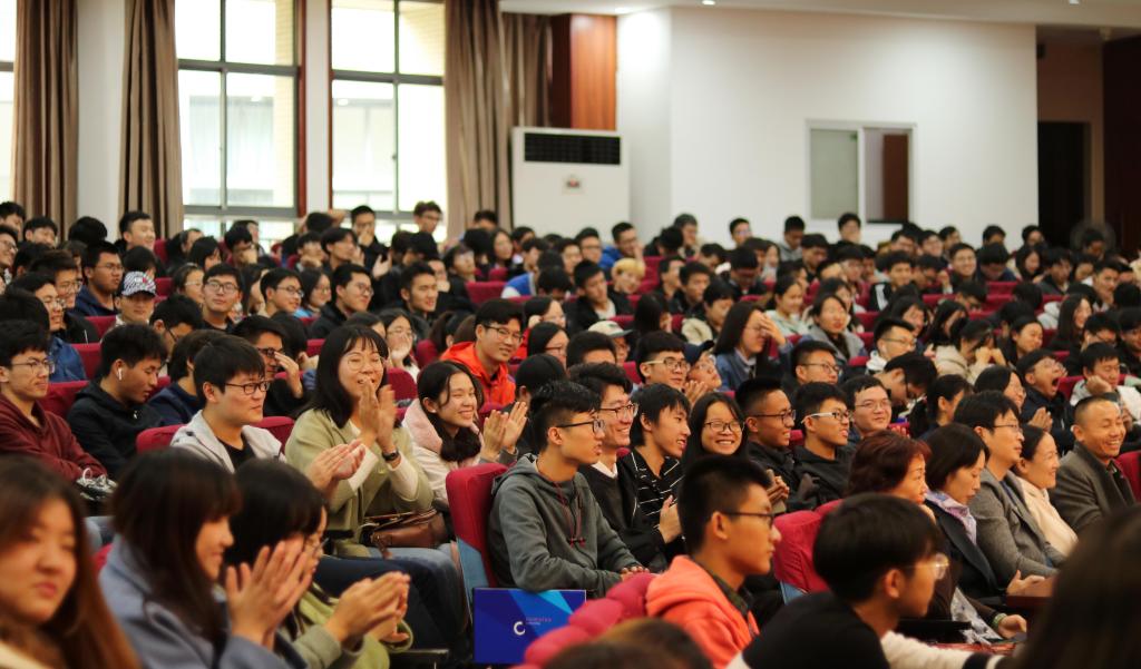观众互动环节,现场学生提问踊跃。三位创业校友集中回答了创业与升学的选择、创业与知识积累的关系等相关问题。李可佳表示,现在的创业不同于5年前的创业,创业如今是高技术的比拼,读研可以丰富对科技的认知,有利于更好地创业。王不凡表示,创业是一条不断学习、不断进步的道路,他以自己就读计算机本科专业、管理学硕士期间的经历,分享了创业倒逼自己学习不同领域知识的过程。魏佳星则表示,自己的创业想法正是源于读研过程中的观察与思考。此外,创业校友还围绕信息化时代如何保证大数据安全、企业资本融资、创业至暗时刻等问题与同学们进行了交流。