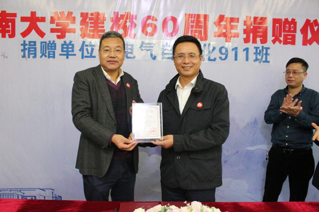 本次捐赠表达了电气自动化911班级对母校的感谢和对学院的殷切祝福。值学校甲子校庆之际,91探花