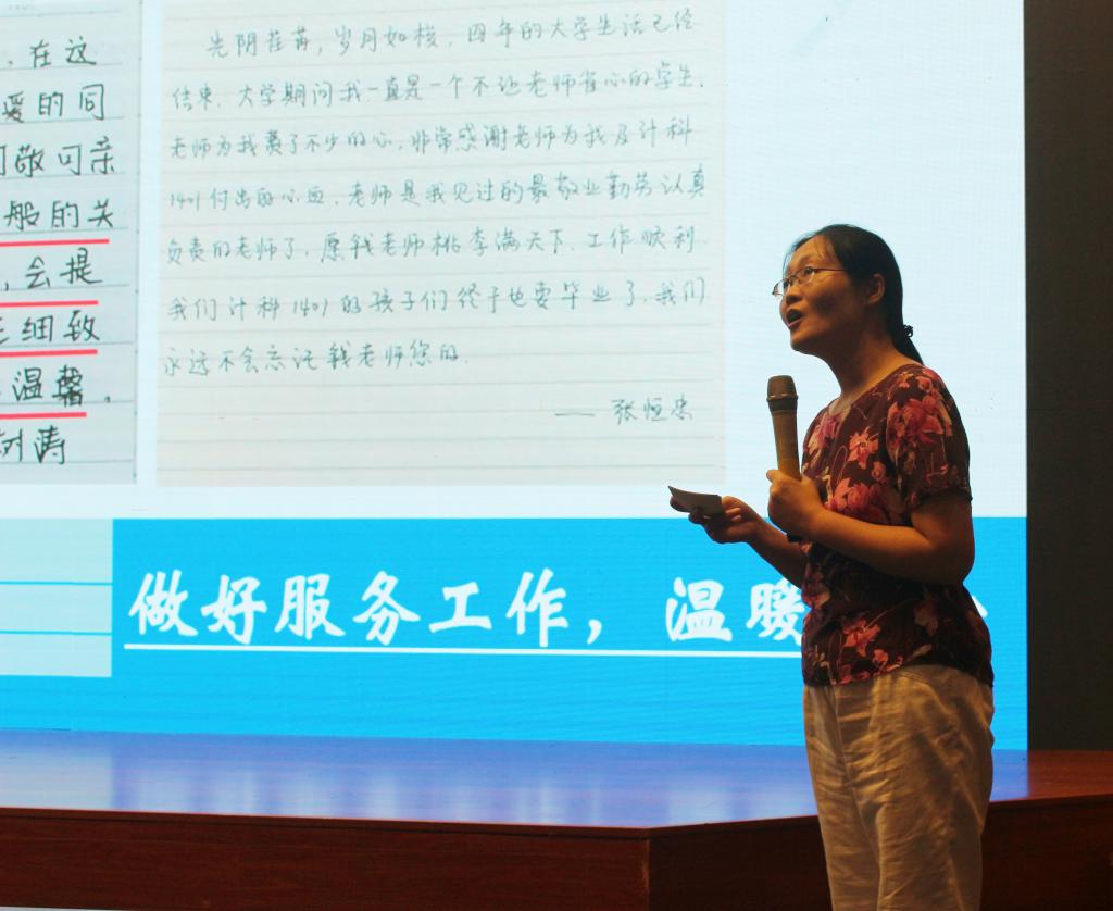 此次比赛由教务处、人事处、党委宣传部等部门负责人组成的评审委员会,和各学院派出的学生大众评委共同打分,按照分数从高到低,选出第十四届“我最喜爱的老师”。在主持人宣读比赛规则、参赛教师依次发表宣言后,决赛评比正式开始。15位老师根据自身从教经历,结合教学体会,向评审们展示自己的教书育人成果,形式新颖,甚至有两位老师现场作画,为校庆献礼。