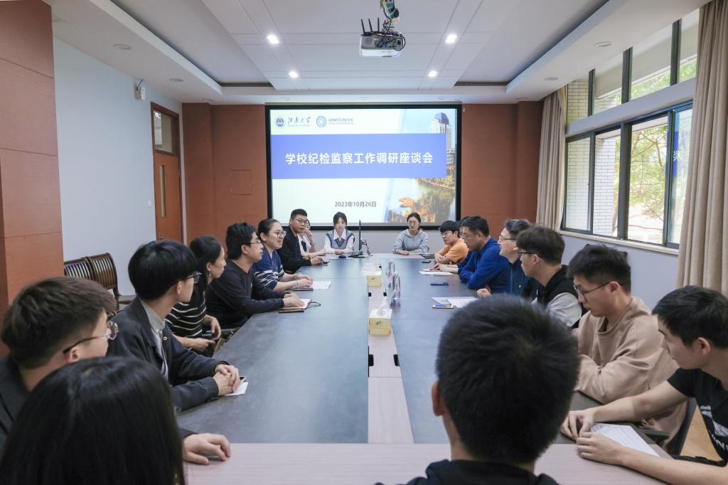 在座谈环节,与会师生纪检委员就基层单位推进全面从严治党应关注的风险点、作为纪检委员落实全面从严治党监督责任面临的难点问题、如何推动学校纪检监察工作更好开展等具体内容进行了充分的交流。