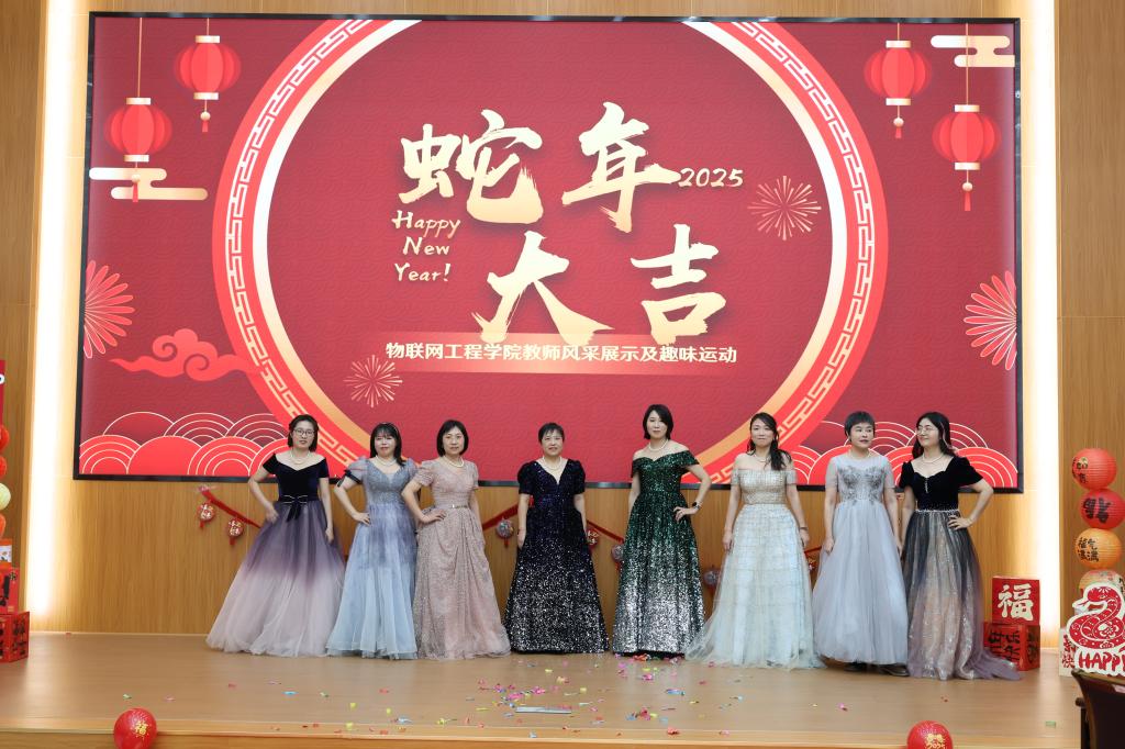 风采展示环节,现场精彩不断,亮点纷呈。新加入学院的老师们齐声合唱《上春山》,青春的歌声中满载着对蛇年的美好祝愿;学工团队的《快乐小人舞》逗趣搞怪,尽显活力;电气系老师雷星雨以一首《搁浅》独唱,深情演绎,令人动容;而自动化系全体老师的《自动化Passion》走秀,更是将现场气氛推向高潮,充分展现了物联教师的独特魅力与风采。此外,关工委代表教师赵曾贻的深情朗诵《囚歌》、分工会教师团队的舞蹈《八方来财》、实验中心带来的诗朗诵《实验室的光芒》,无不展示了老师们多才多艺的一面,传递了他们对教育事业的热爱和对学院未来的美好祝愿。