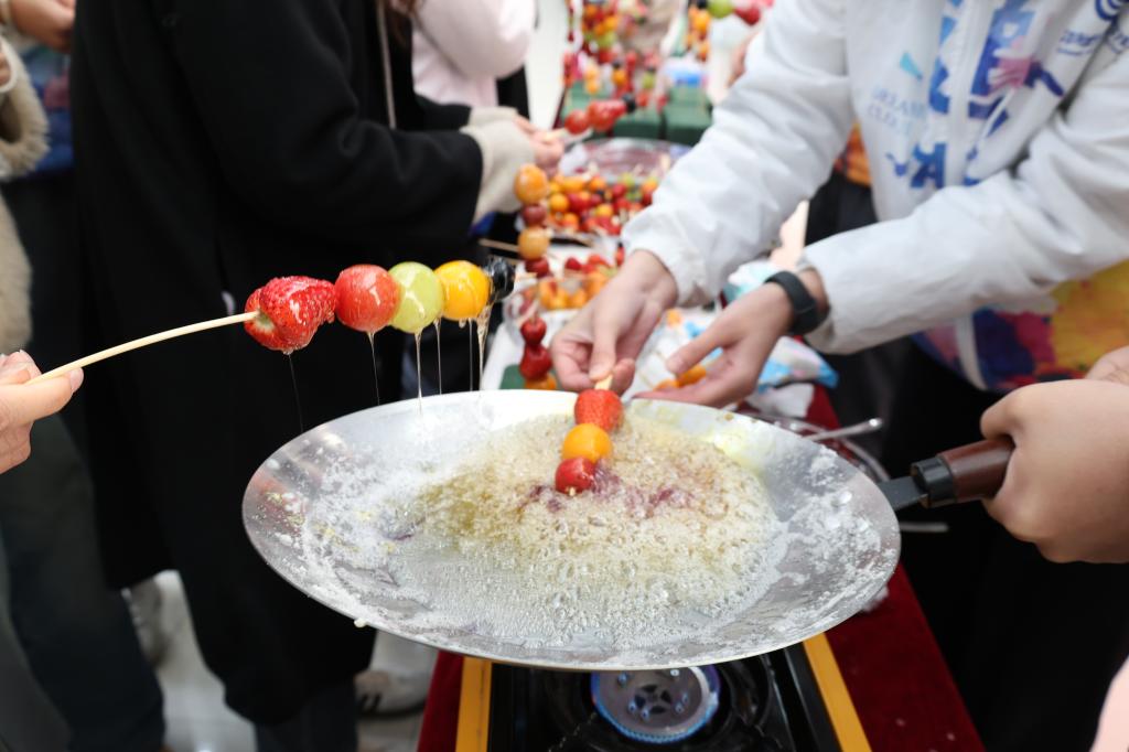 在“冰糖福禄串美好”DIY活动中,女教工们化身“甜蜜匠人”,亲手制作传统糖葫芦。鲜果挑选、熬糖挂浆、创意包装……四小时活动中,累计完成450余串晶莹剔透的糖葫芦。更有兄弟学院女教工共同参与,一起感受甜蜜的节日氛围。