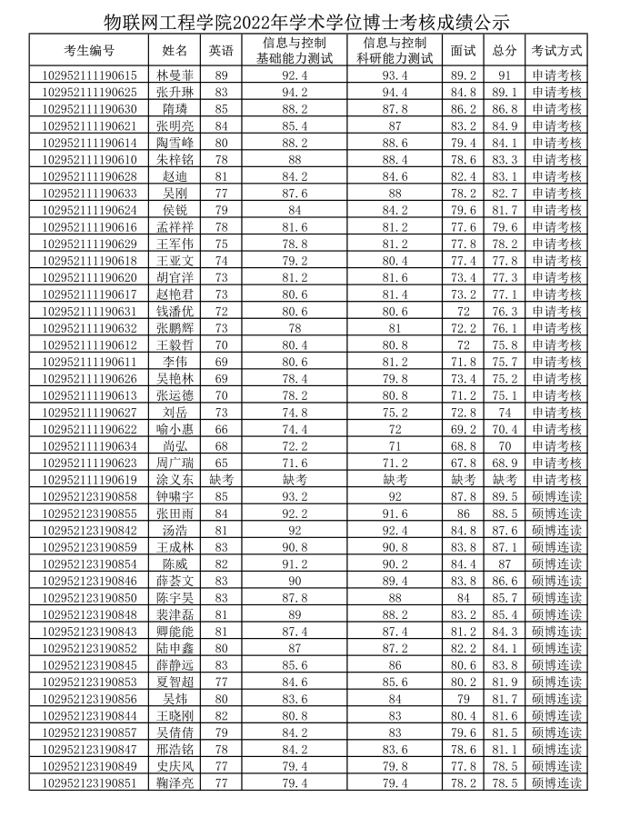 91探花 2022年学术学位博士考核成绩公示