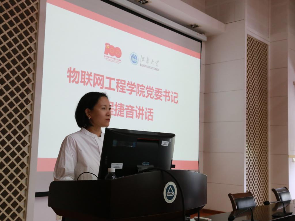 程捷音代表学院党委向新入党同志表示祝贺,向全院各岗位上创先争优、奋斗奉献的400余名师生党员致以节日的问候。她说,庆祝中国共产党成立100周年,是党和国家政治生活中的大事,新党员入党宣誓活动既是对建党100周年的隆重纪念,也是对新老党员一次深刻的党性教育,广大党员干部要坚定理想信念,把学习贯彻习近平新时代中国特色社会主义思想放在首位;要永葆初心使命,用一生来践行跟党走的理想追求;要坚持发挥先锋模范作用,在实干中与祖国共进、与时代同行,以高质量发展庆祝建党100周年。