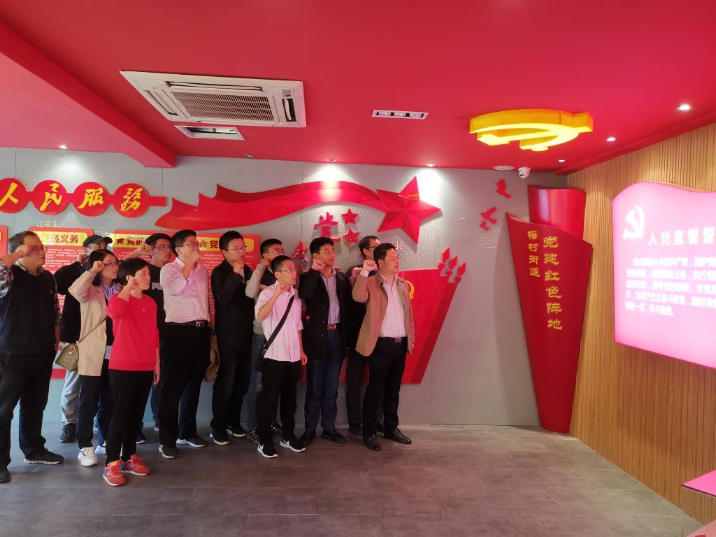 随后信息技术党支部一行参观了“新四军江抗东进纪念馆”,共同追忆了70多年前血与火的峥嵘岁月。江南抗日义勇军简称“江抗”,“东进”是指当年这支部队受命挺进苏南东部的行动,梅村则是当年这支部队的大本营。纪念馆分“日军侵占苏南东路地区”“新四军江抗东进抗日”“新江抗挺进无锡”“新四军重返无锡”“抗日战争时期在无锡牺牲的革命烈士”五个部分。在讲解员的引导下,大家通过观看文献资料、历史图片、珍贵实物,系统学习了新四军深入苏南东路地区,在地方党组织和人民群众的大力支持下,与日伪军进行殊死战斗,创建苏南抗日游击根据地的英勇壮举。参观结束前,大家还重温了入党誓词。