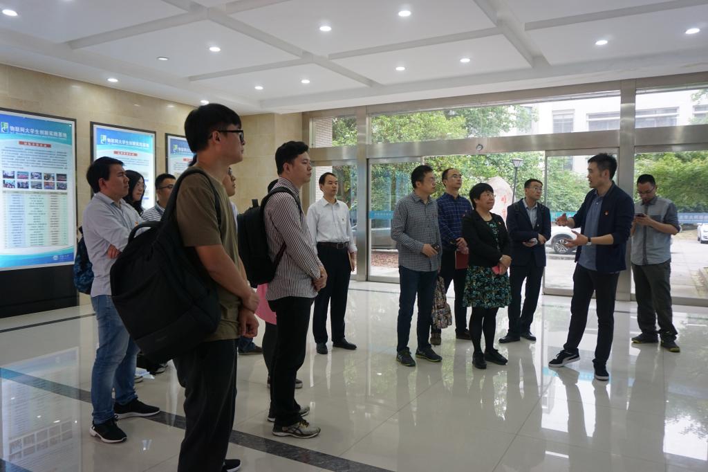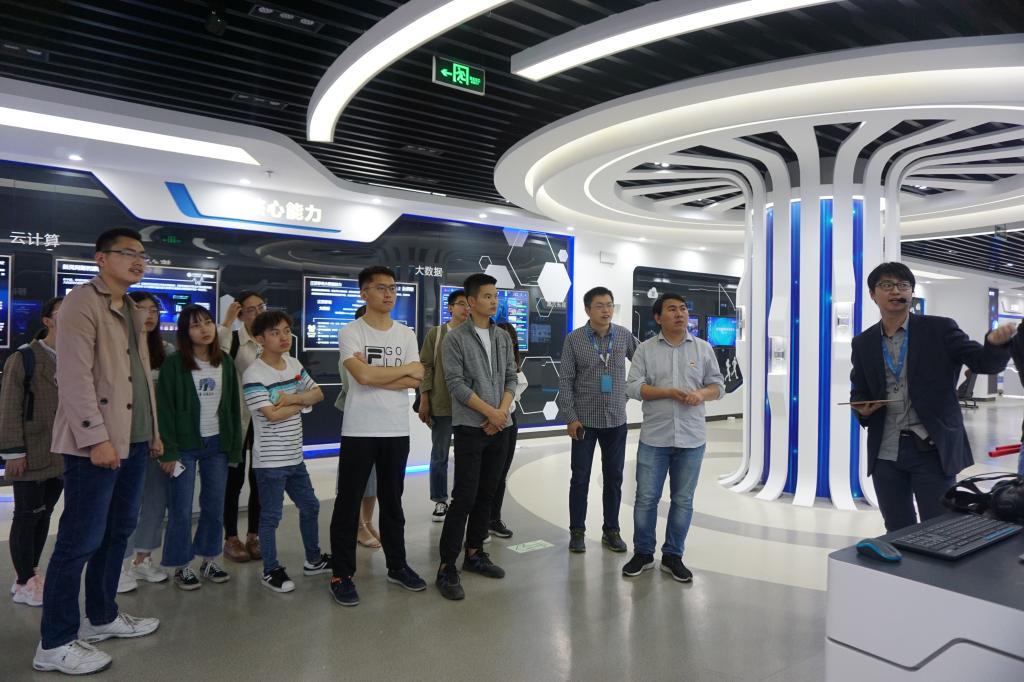 仪式结束后,吴带领江苏移动网络部无锡中心党支部成员参观了物联网大学生创新实践基地,实地介绍基地发展及运行情况。随后,双方支部成员一同前往中国移动无锡分公司物联网展厅进行参观。展厅负责人展示了云计算、大数据、VRAI、智慧政务、智能制造、V2X以及远程驾驶等最新科技,使物联网大学生创新实践基地党支部师生深入了解了移动公司在智能领域的发展。参观结束后,双方在移动公司会议室进行了简短的座谈会议交流,并合影留念。