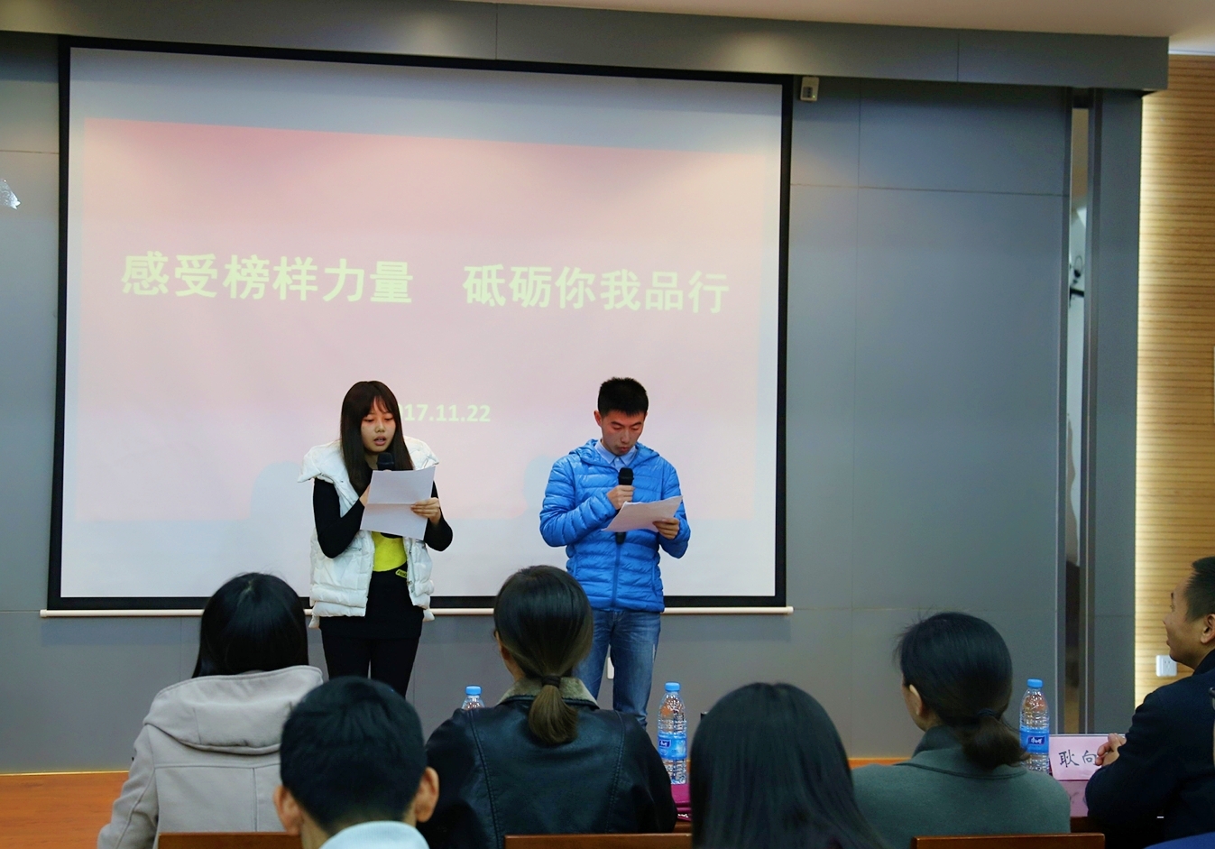本次活动主要分为观榜样、诵模范、树标杆、听训话四个环节。在“观榜样”环节里,同学们观看了“大国工匠”榜样模范胡双钱的事迹,胡双钱至今工作了37年,生产了数十万个飞机零件从没有出现过任何差错。他用自己的行动诠释了平凡的岗位,不平凡的榜样力量。接下来,“诵模范”环节中,同学们朗读了《习近平的七年知青岁月》,展示了习近平同志扎根中国大地,洞察国情民情,他树立起与党和人民同心同向的理想信念和价值追求,把无悔的青春刻写在实现中华民族伟大复兴的历史丰碑上。在“树标杆”环节中,同学们展示了默默奉献的“炎黄”张纪清、乐于助人的“公益雷锋”范跃宁、兢兢业业的辅导员郑丹丹以及辛勤耕耘的退休教师张平,让同学们体会到榜样在你我身边,要学习榜样,给身边带来温暖。