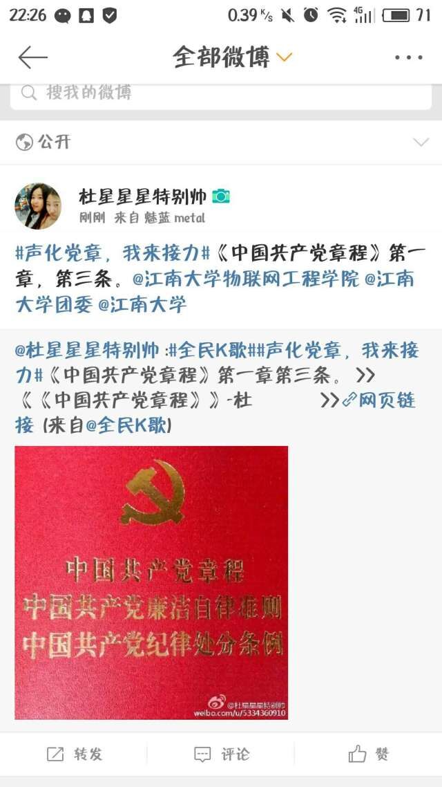 等官方微博,巧妙的将传统的朗诵与“互联网+”思维相结合。通过该活动,让党员们诵读党章的过程中受到了深刻的政治理论和党性知识教育。