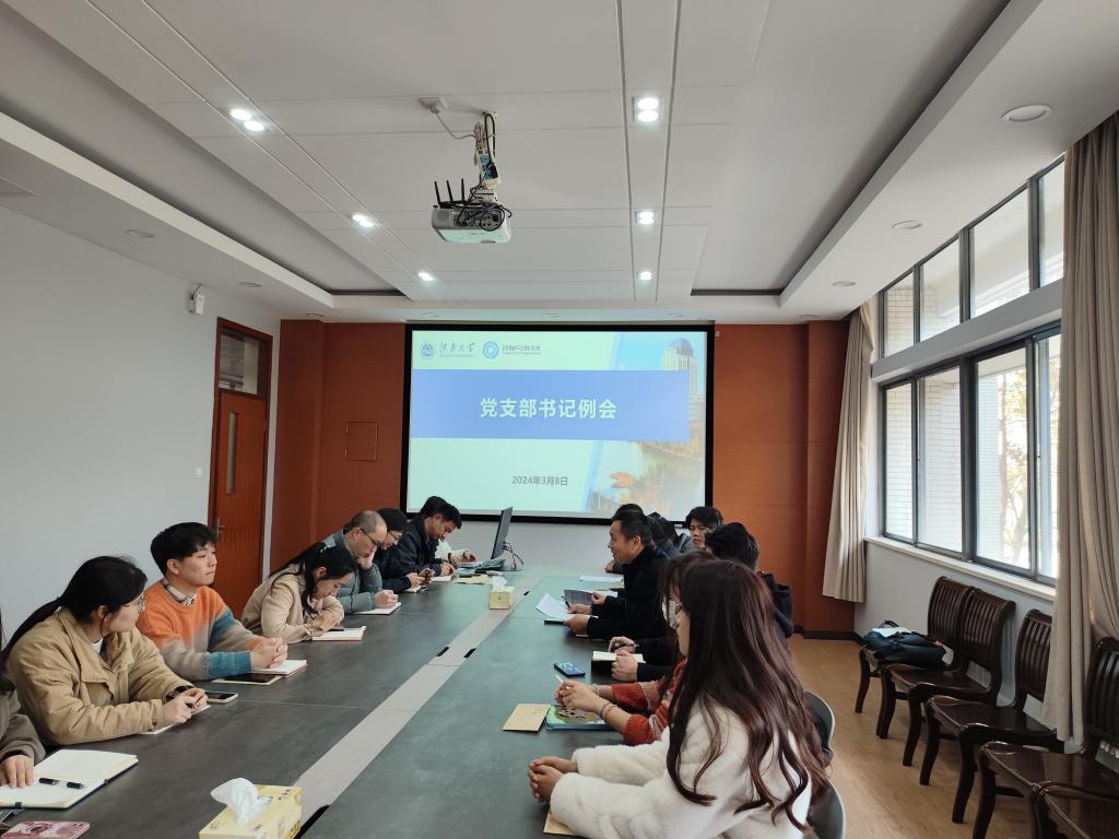 糜海燕通报了2023年度学院支部工作手册检查情况,指出共性问题,并提出了相应的改进建议。随后,就学院近期党建工作进行安排部署,重点就2023年度民主评议党员工作的要求、流程和注意事项进行了提示提醒,对3-4月专题组织生活和党员经常性教育进行了统筹安排。