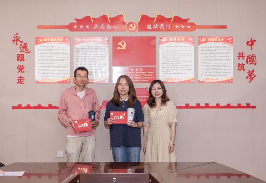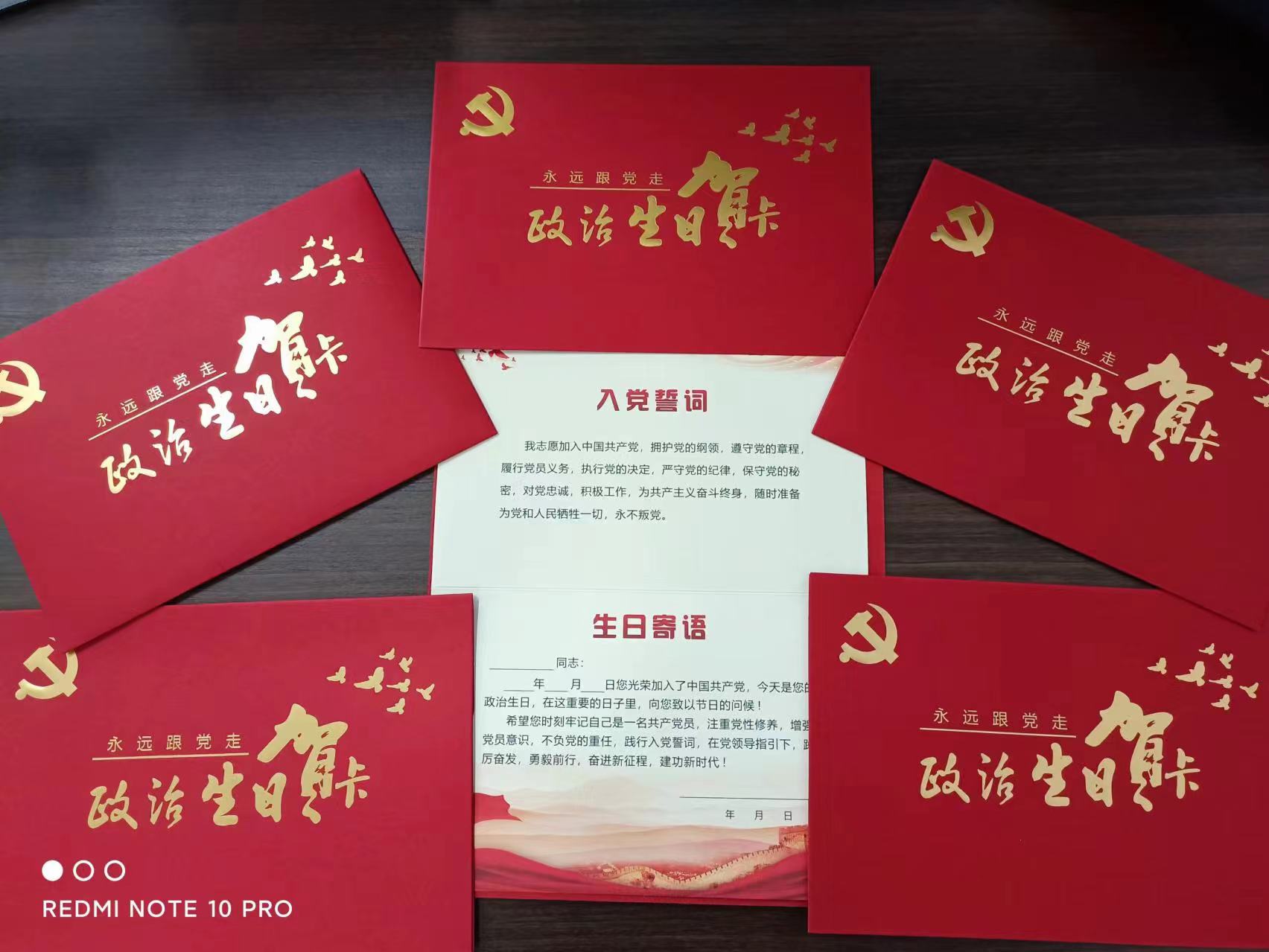 专职组织员糜海燕为新党员同志颁发“政治生日”贺卡与礼物
