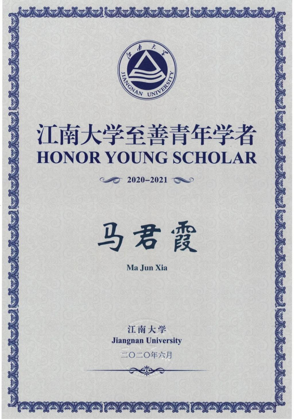 2020-2021年度“至善青年学者”称号。