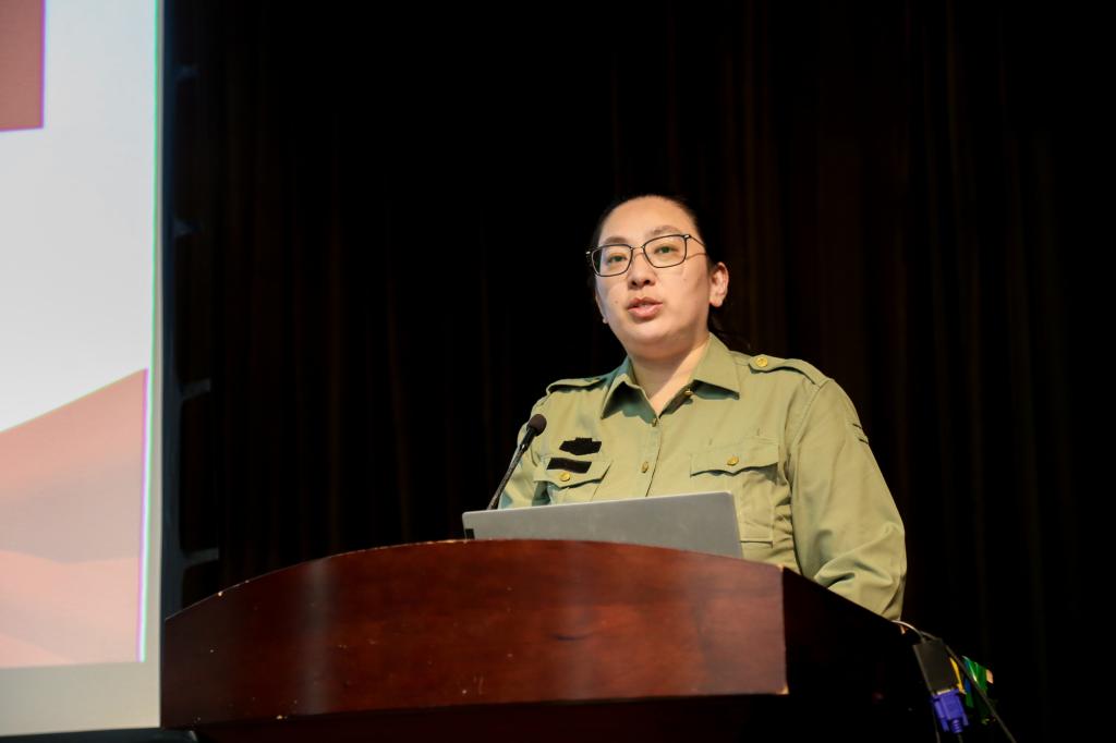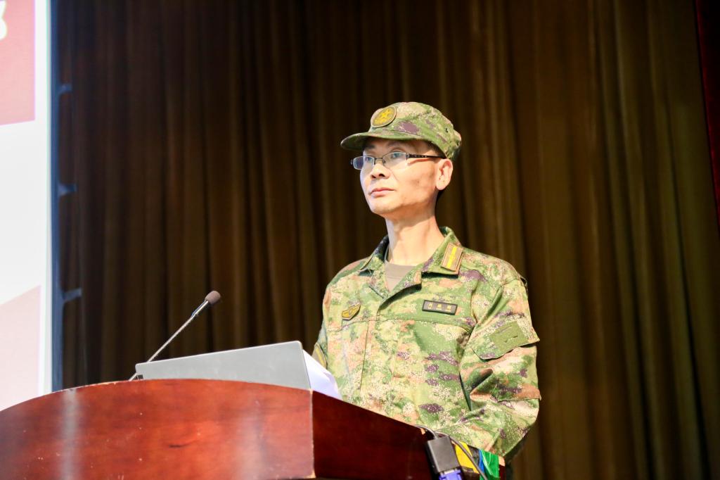 孔丽丹作总结发言。她指出,军训是对国家安全的直接体验,我们要深刻明白在祖国安定团结、安居乐业的背后有一群可敬可爱的军人在负重前行,同学们应当积极投身军训,争当新时代国防后备力量;她强调,军训是对思想和身体的双重洗礼,更是对个人与集体的深刻感知,同学们要能够以苦为师锤炼过硬品质,讲求纪律争做军训先锋,在高标准严要求中出色完成本次军训任务。