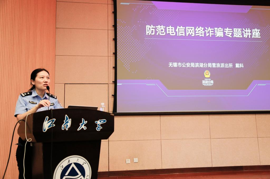 为进一步增强新生的安全意识,学院特邀雪浪派出所戴警官进行了反诈专题宣讲。戴警官通过数据分析、图文展示等方式,向新生详细讲解了各种常见的诈骗手段,结合多起发生在校园的真实受骗案例,引导新生正确识别诈骗行为,并以“不透露”“不轻信”“不转账”三点为新生提供了实用的安全知识。