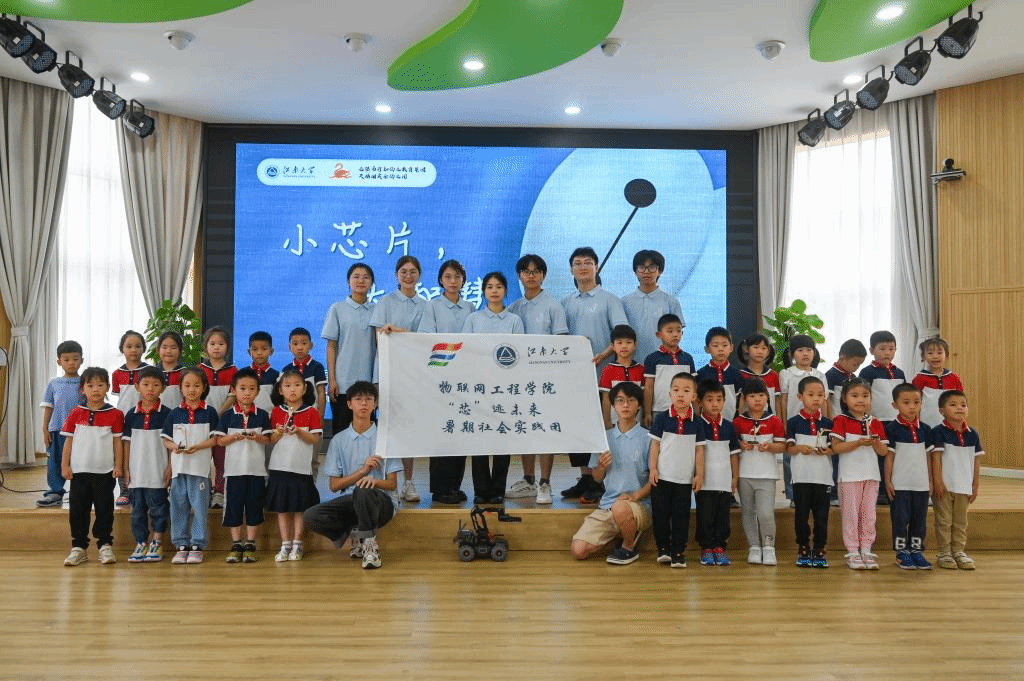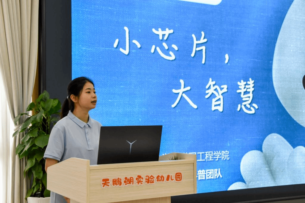 分团委书记洪筱和辅导员王涛老师带领“芯”迹未来社会实践团,走进无锡市行知幼儿教育集团天鹅湖实验幼儿园,为孩子们带一堂别开生面的《小芯片,大智慧》趣味科普课,进一步激发少年儿童“爱科学、学科学、用科学”的热情和志向。
