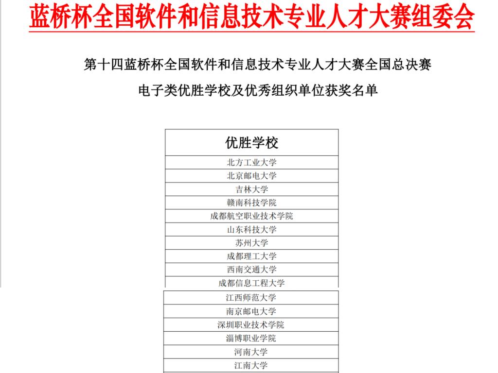 电子类优胜学校及优秀组织单位部分获奖名单