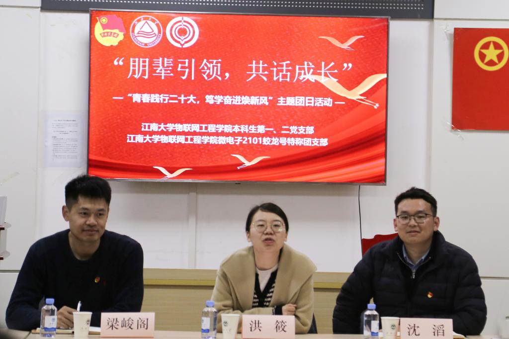 团委书记洪筱、2021级辅导员沈滔、微电子2101班班主任梁峻阁,本科生党员代表陶晨曦、万齐星、张鹏飞、刘冠男、潘瑶瑶、佴宇飞、何丁赋等参加活动。活动由学习委员刘瑾萱主持。