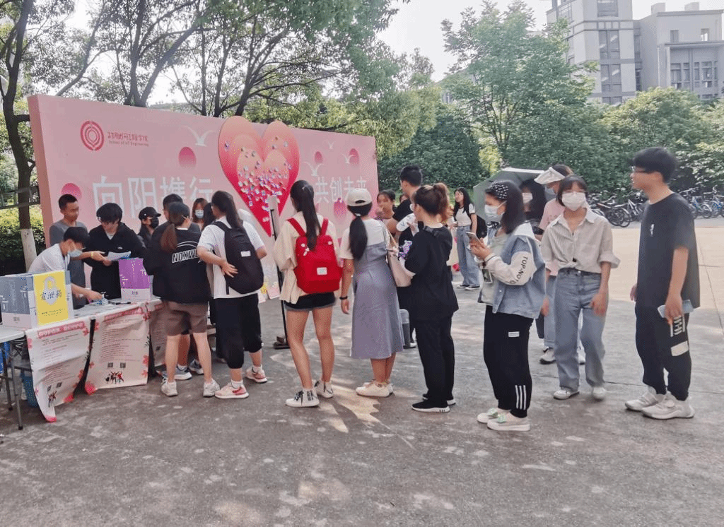 在5月25日 “全国大学生心理健康日”当天,举办“向阳携行,共创未来”心理文化节活动。
