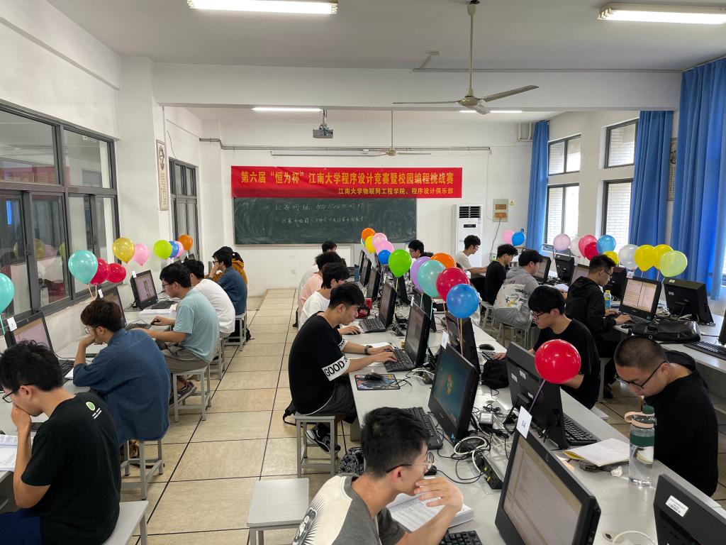 为参赛学生提供了比赛机房、测试专用平台和场地,由物联网程序设计俱乐部的指导老师和核心成员针对多种程序语言编程、江南OJ平台、C++ STL平台等的使用进行了10余次集中培训。经过前期培训、初赛等环节,最终有36名同学脱颖而出,进入决赛环节。
