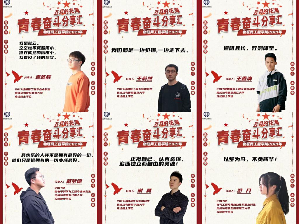 本届“五月的花海”青春奋斗分享汇活动紧密结合同学们的实际需求,充分调动了同学们考研深造的热情,激发了大家的求学信心,为同学们搭建了学习分享平台,也给学院团学工作打开了新的途径。相信通过越来越多优秀物联学子的引领,低年级的同学们能更好地明确奋斗目标,坚持不懈,奋发有为,为实现梦想而努力奋斗。