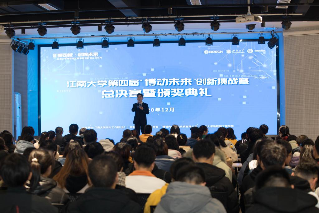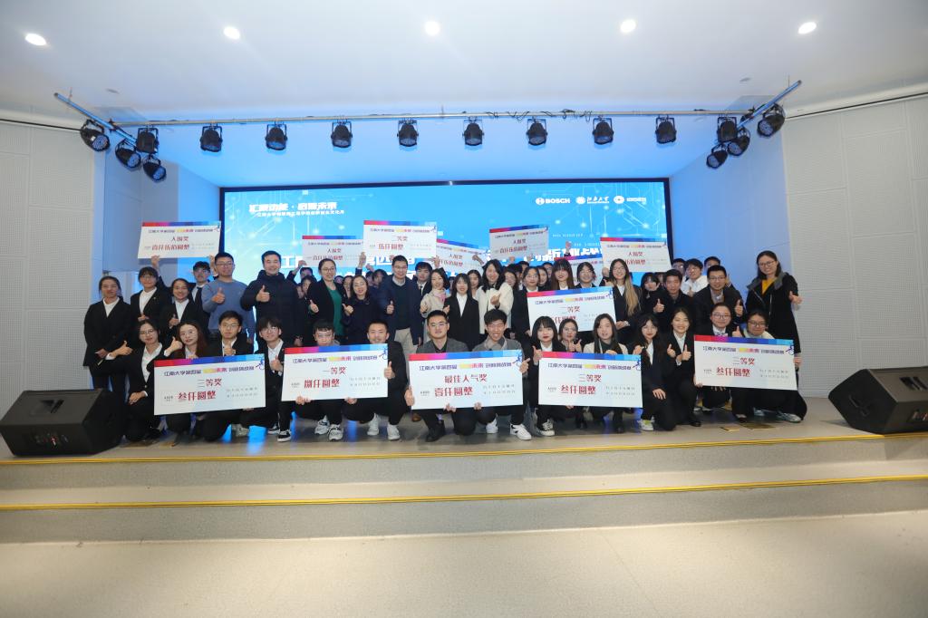 “博动未来”创新挑战赛总决赛暨颁奖典礼在北区大学生活动中心F105圆满落幕。博世汽车柴油系统有限公司喷射技术开发部总监王军华,博世汽车柴油系统有限公司新业务发展部总监董明哲,博世汽车柴油系统有限公司高级平台经理金鑫,91探花