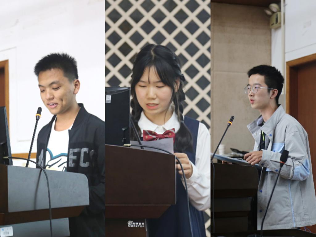 颁奖结束后,本届竞赛一等奖获得者段勤硕、辛娇杨、李显三位同学上台发表获奖感言,并与台下同学分享竞赛经验及收获。他们指出,电子设计竞赛过程虽艰辛劳累,但其中对个性品质和团队配合的历练使自身受益匪浅,特别是竞赛中在老师的指导下,攻克赛题难点,让参赛作品的指标达到更高水平等方面,对于攻坚克难意志品质的磨练,迎接挑战精神的激励以及提升电子设计综合素质,都具有十分重要的意义。颁奖仪式最后,竞赛指导老师朱凯元为同学们讲授了主题为“常用电子元器件的选用和焊装”的开班第一讲。