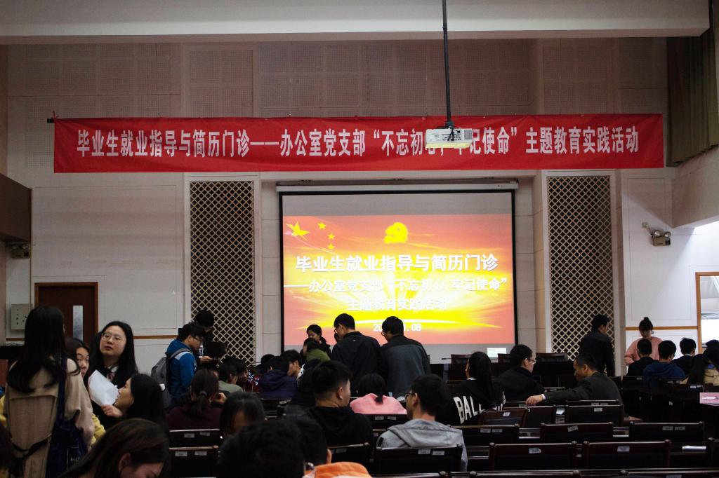 办公室党支部在学院D328成功举办“毕业生就业指导与简历门诊——不忘初心、牢记使命”主题教育,本次活动旨在为2020届毕业生提供就业帮助。院党委副书记、副院长耿向阳携办公室党支部的各位党员为同学们在就业方面存在的困惑进行悉心解答和指导。