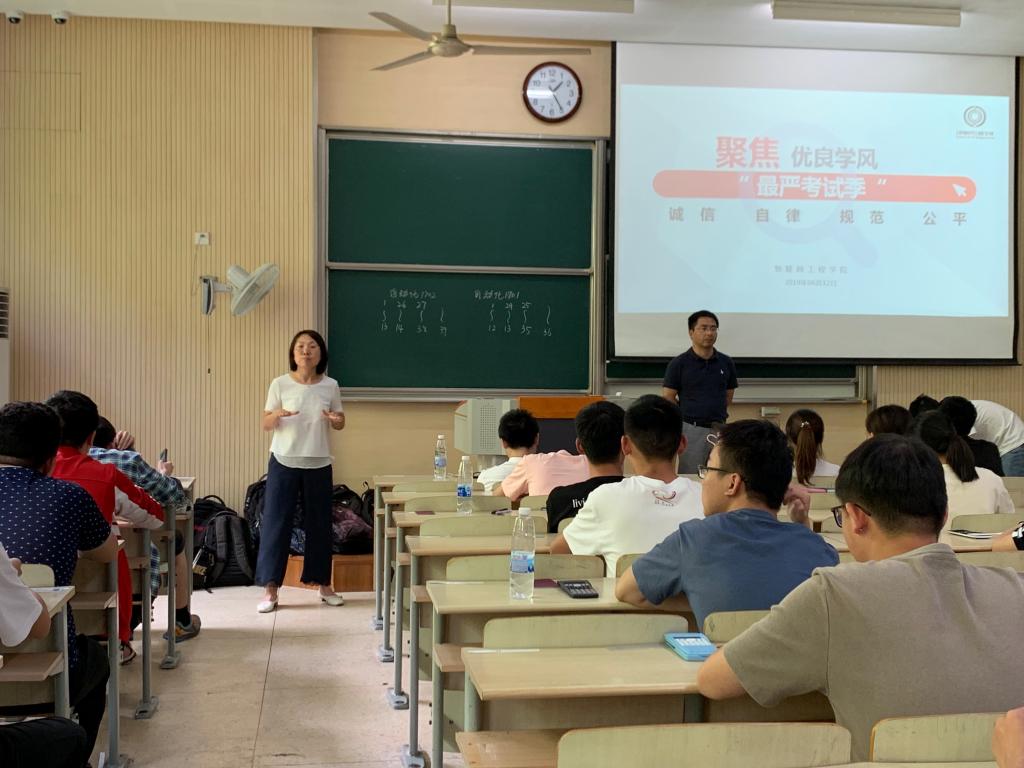 6月3日上午,在学院C121成功举行了“2018-2019学年最严考试季”的启动仪式。启动仪式中,院党委副书记耿向阳围绕本次活动的重要意义进行讲话,指出:在思想教育层面:诚信教育、规则意识、契约精神;在学风建设层面:从严治学、以考促学、教育公平;在人才培养层面:严进严出、以考促教、保障质量。院分团委书记吴垚就本次活动具体活动方案展开详细介绍。院辅导员洪筱就由研究生党员担任的“监考助理”其工作内容和职责进行了明晰。
