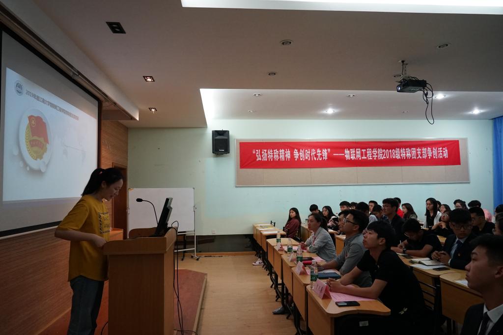 特称团支部标兵微电子1701瞿秋白特称团支部的团支书乌绮,为同学们分享和展示特称团支部标兵的底蕴与内涵,她重点分享了如何更好、更实、更细的开展好团支部的建设各项工作,如何引领支部团员以习近平新时代中国特色社会主义思想武装头脑,将新思想入脑、入心、入实践,并鼓励2018级的团员青年们发扬特称精神,作新时代的自强不息的新青年,肩负起新时代青年应有的责任和担当。
