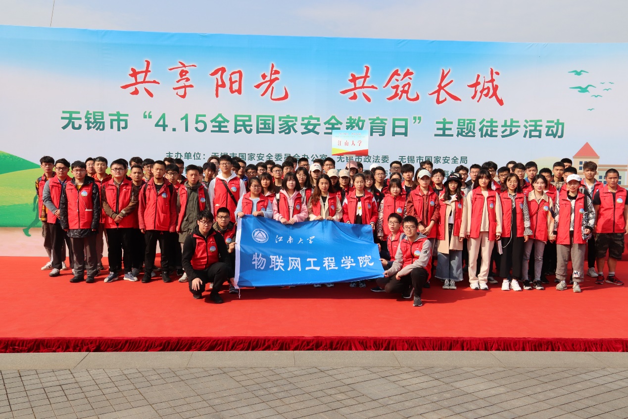学生代表团身着红色马甲,胸前佩戴统一活动标志,从百米高喷出发,沿环湖路向南,由渔夫岛生态国东南门进入渔夫岛,途径卓仁桥、善贾桥、建筑路以及环湖路,最终回到起点蠡湖百米高喷广场,徒步总路程约5.5公里。徒步过程中,同学们扫描二维码参与安全教育日有奖答题活动,进一步了解了国家安全法等法律法规,有效提高了维护国家安全的法律意识。