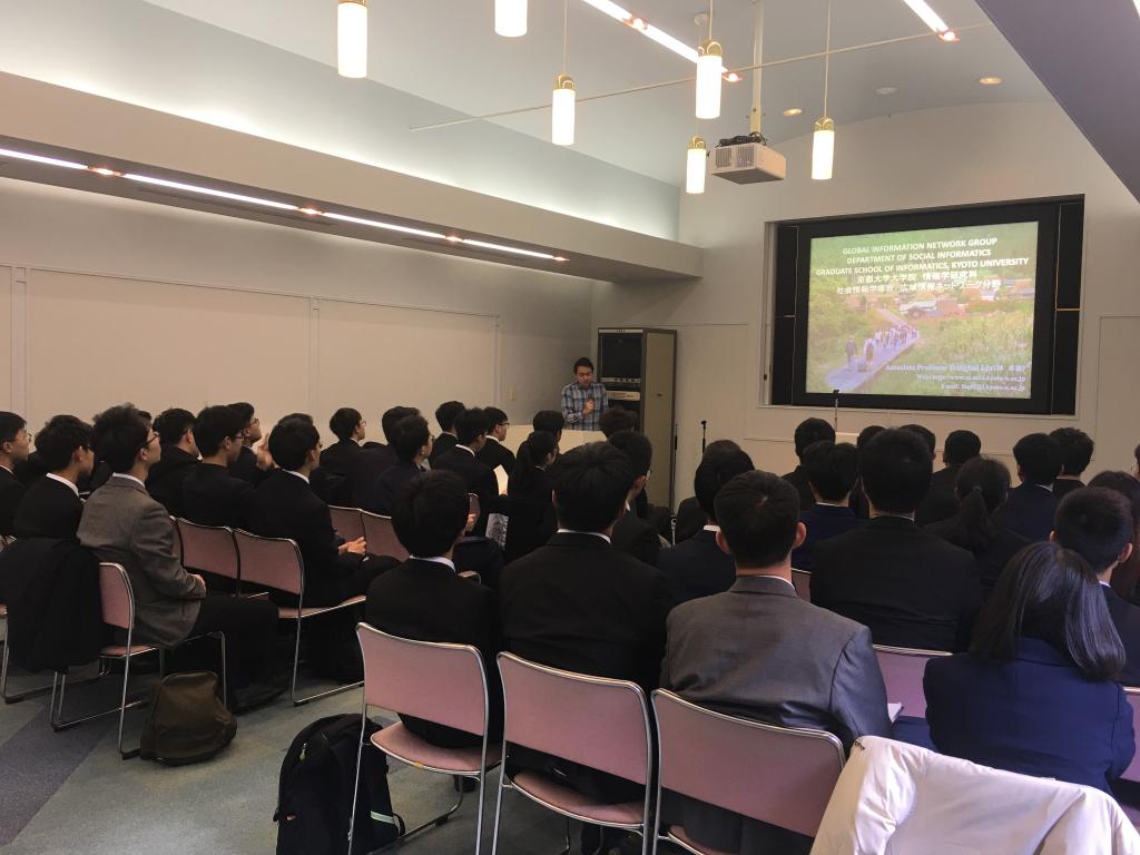 在京大学习期间,同学们有幸聆听了京都大学研究生导师、日本部门表彰获得者塩路昌宏教授关于汽车引擎、燃料与未来汽车的主题分享以及“IoT-大数据-AI-超级智能”等主题讲座,引发了对未来物联网发展的无限展望。来自京都大学和大阪大学两位教授和当地留学生也对赴日留学的各项情况进行介绍,让同学们更加深入了解了京都大学学术研究的自由氛围。在最后一节课的结课汇报中,各小组成员各抒己见,阐述理解、展示实例、表达憧憬,让智慧城市课题丰富鲜活。此次展示全程英文交流,更是对同学们英语口语能力的一大锻炼。