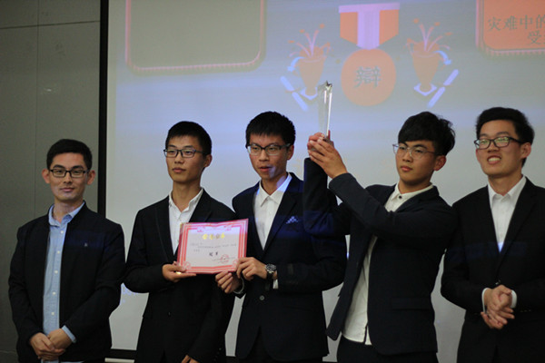 此次决赛的辩题为“灾难中的自私自利应不应该收到谴责”。在双方辩手自我介绍后,辩论赛正式拉开了帷幕。比赛共分为开篇陈词,攻辩,自由辩论,总结陈词四个阶段。首先由正方一辩开篇陈词立论,他沉着冷静,娓娓道来,充分展现了其冷静分析队的特点。反方一辩以“灾难中的行为判断多为本能”以及“灾难中的道德标准与和平社会道德标准不对等”作为论点展开阐述;正方四辩面对反方一辩的论点,提出“神经病违法不受法律制裁”的例子巧妙反驳。攻辩环节中,反方二辩机智发问,一句“自私从何而来”使得正方辩手一时语塞,博得观众热烈的掌声。三辩质询环节,正方三辩质询反方一二四辩时步步紧逼,言语激昂,反方从容淡定,一一化解。而到了自由辩论环节,可以说是本场的高潮部分,正反双方言辞犀利,就辩题展开论述,火花四溅,选手们的口才和应变能力在这一环节上展现的淋漓尽致。期间,正方幽默诙谐的言辞也迎来了阵阵掌声。比赛最后,正反方四辩分别进行了总结陈词,双方选手引经据典,用灵活的思维和缜密的逻辑推理赢得了在场观众和评委老师的阵阵掌声。接着评委提问,双方辩手紧扣思路对评委的问题进行了回答,然后所有评委退席评判,讨论结果,进行点评。