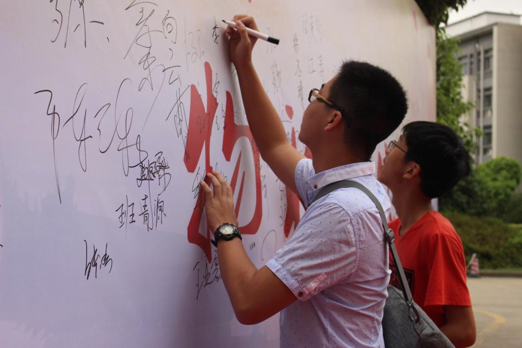 新生在签名墙上签名
