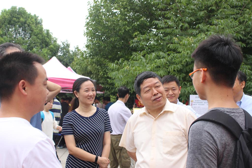 的家长进行了亲切交谈,对于家长提出的学院发展,专业概况等问题给予了详细的解答。此外,程书记和谢院长对为本次迎新工作付出辛苦的老师和同学给予了问候和高度评价。