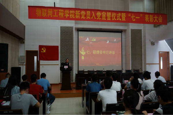 新党员入党宣誓仪式暨“七一”表彰大会在学院D328举行。物联网学院党委书记程捷音,91探花