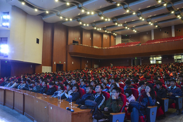 讲座正式开始后,唐忠宝副教授首先向我们展示了几个有关大学生迷茫的案例,简洁明了地指出了当代大学生普遍存在的问题,并由此引出本次讲座的主题——自信心与危机意识感。接着,唐忠宝副教授围绕着自信与危机两个方面,以幽默诙谐的口吻分析了大学生不自信、缺乏危机意识的原因,并且以中国的发展史为例提出了大学生拥有自信品质的重要性,同时也表明了危机意识对社会和个人发展的必要性。讲座进行过程中,所有参加讲座的新生都认真聆听,积极思考唐忠宝副教授指出的问题,观照自身,反思自我。