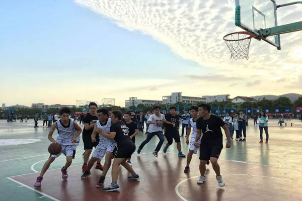 同学们在篮球场上奋力拼搏