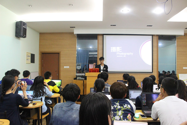 学生会第一次干事培训正式开始。首先,王鑫学长以幽默的方式引入本次培训的第一个主题——摄影技术。王鑫学长重点讲解了拍摄的构图方法,并且从光圈、快门、感光度、白平衡及曝光模式等多角度讲解了单反使用的基础方式,他深入浅出的讲解和及时的互动获得了全场干事们的阵阵掌声,参与培训的干事们在零距离接触单反的同时,学习到了摄影的诸多技巧,受益匪浅。
