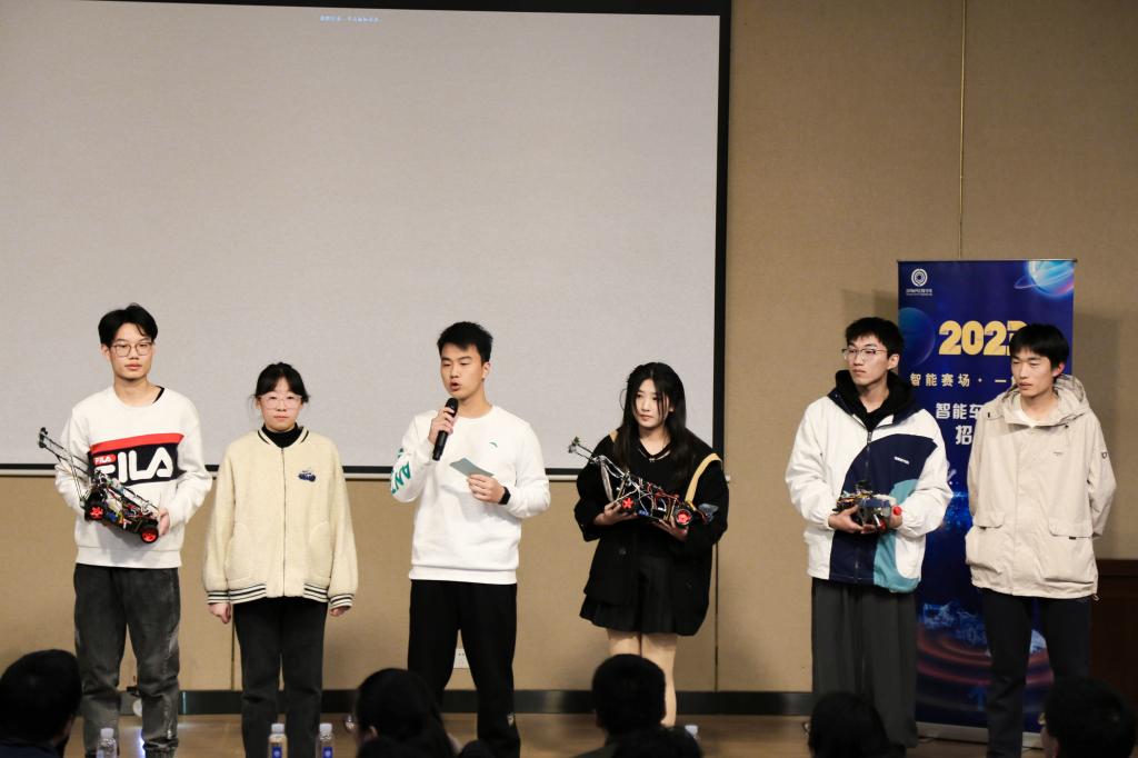 随后,各参赛团队依次上台展示。经前期报名、学院初审,共有10支团队入围决赛,涵盖“科创俱乐部”“科研团队”“社会实践团”“学生组织”“优秀宿舍”等多种类别,他们用各自团队的奋进故事给出优秀的物联定义。各团队将丰富的“PPT展示”同“创意视频”“情景再现”“模型互动”“成果实物”等巧妙结合,将奋斗过程的艰难与汗水和最终取得的成果与突破生动呈现给与会师生。值得一提的是,评委老师的敏锐提问和参赛团队的精彩答辩不断碰撞出思维的火花,快问快答、团队接力、专业点评将现场气氛推至高潮。