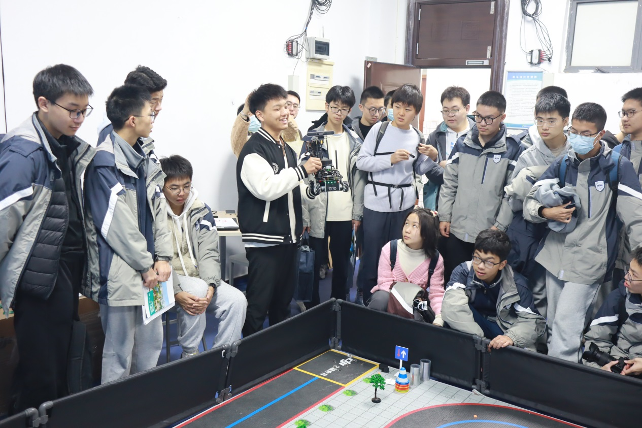 的秀美景色吸引了众多同学驻足停留,激起同学们对大学生活的憧憬和向往。在电子设计俱乐部,同学们依托讲解员的讲解和自身基础知识储备,认真了解面前数种功能电路的原理和组成,工程思维也在理论与实际的交汇中不断完善;在智能车俱乐部,同学们时而认真揣摩两轮车、独轮车等科创作品的工作原理,时而惊喜于作品实现的自主运行、自动避障等奇妙功能,他们不仅像海绵一样汲取知识,更能围绕其中的科学原理踊跃发言。科普研学基地为同学们提供了有趣的大疆智能车和飞行器的操作互动体验,物联网创新应用俱乐部的智慧河道项目更是帮助同学们树立了为人民谋福祉的科研初心。